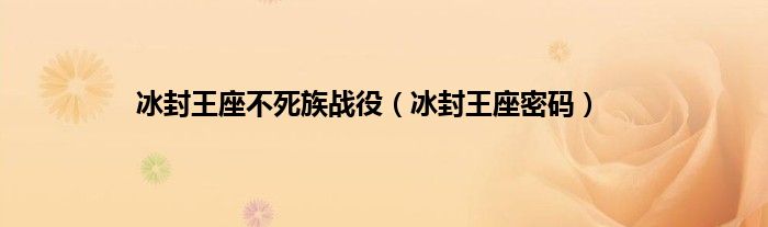 大家好,小问来为大家解答以上问题。冰封王座不死族战役,冰封王座密码这个很多人还不知道,现在让我们一起来看看吧!