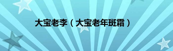 大家好,小问来为大家解答以上问题。大宝老李,大宝老年斑霜这个很多人还不知道,现在让我们一起来看看吧!