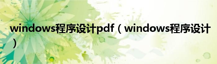 大家好,小问来为大家解答以上问题。windows程序设计pdf,windows程序设计这个很多人还不知道,现在让我们一起来看看吧!