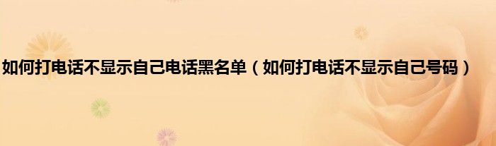 以上就是【如何打电话不显示自己电话黑名单,如何打电话不显示自己号码】相关内容。