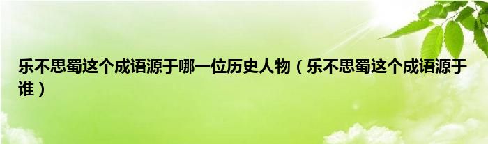 大家好,乐不思蜀这个成语源于哪一位历史人物,乐不思蜀这个成语源于谁很多人还不知道,现在让我们一起来看看吧!
