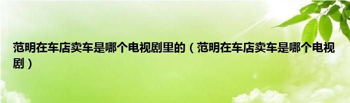 本文,范明在车店卖车是哪个电视剧里的,范明在车店卖车是哪个电视剧到此就分享完毕,希望对大家有所帮助。