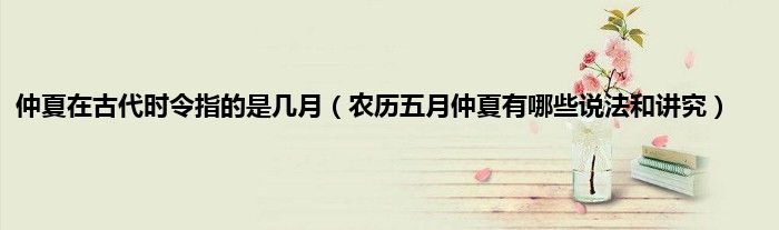 大家好,仲夏在古代时令指的是几月,农历五月仲夏有哪些说法和讲究很多人还不知道,现在让我们一起来看看吧!