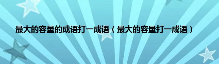 大家好,最大的容量的成语打一成语,最大的容量打一成语很多人还不知道,现在让我们一起来看看吧!