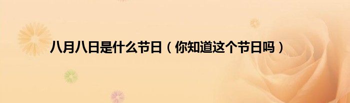 本文,八月八日是什么节日,你知道这个节日吗到此就分享完毕,希望对大家有所帮助。