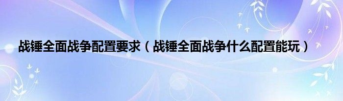 本文,战锤全面战争配置要求,战锤全面战争什么配置能玩到此就分享完毕,希望对大家有所帮助。