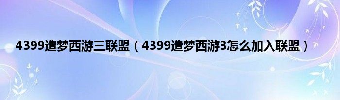 4399造梦西游三联盟(4399造梦西游3怎么加入联盟)