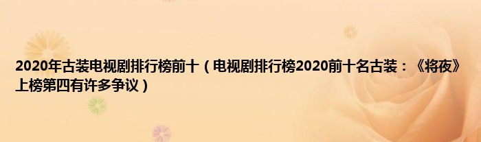 本文,2020年古装电视剧排行榜前十,电视剧排行榜2020前十名古装:《将夜》上榜第四有许多争议到此就分享完毕,希望对大家有所帮助。