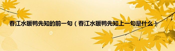 本文,春江水暖鸭先知的前一句,春江水暖鸭先知上一句是什么到此就分享完毕,希望对大家有所帮助。