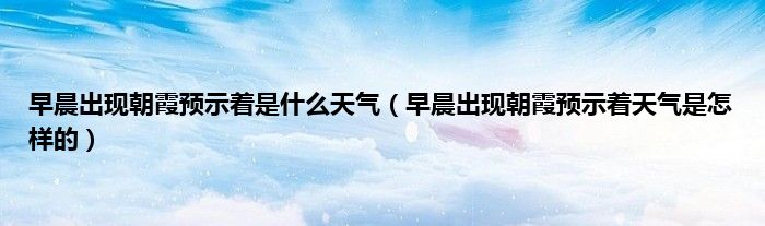 本文,早晨出现朝霞预示着是什么天气,早晨出现朝霞预示着天气是怎样的到此就分享完毕,希望对大家有所帮助。
