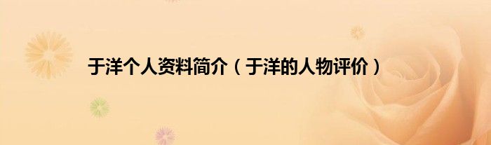 本文,于洋个人资料简介,于洋的人物评价到此就分享完毕,希望对大家有所帮助。