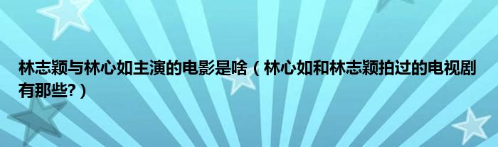 大家好,林志颖与林心如主演的电影是啥,林心如和林志颖拍过的电视剧有那些?很多人还不知道,现在让我们一起来看看吧!