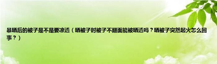 大家好,暴晒后的被子是不是要凉透,晒被子时被子不翻面能被晒透吗?晒被子突然起火怎么回事?很多人还不知道,现在让我们一起来看看吧!