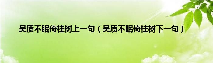 大家好,吴质不眠倚桂树上一句,吴质不眠倚桂树下一句很多人还不知道,现在让我们一起来看看吧!