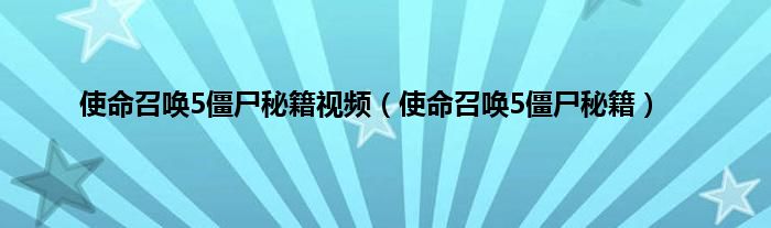 大家好,小问来为大家解答以上问题。使命召唤5僵尸秘籍视频,使命召唤5僵尸秘籍这个很多人还不知道,现在让我们一起来看看吧!