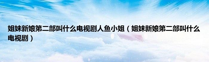 本文,姐妹新娘第二部叫什么电视剧人鱼小姐,姐妹新娘第二部叫什么电视剧到此就分享完毕,希望对大家有所帮助。