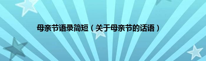欢迎观看本篇文章,小升来为大家解答以上问题。母亲节语录简短,关于母亲节的话语很多人还不知道,现在让我们一起来看看吧!