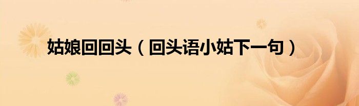本文,姑娘回回头,回头语小姑下一句到此就分享完毕,希望对大家有所帮助。