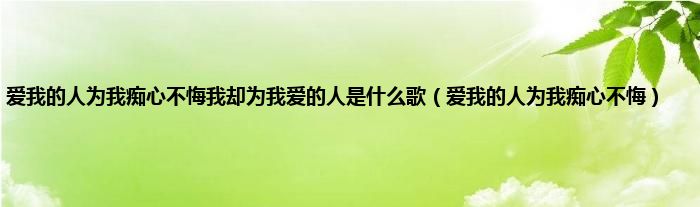 以上就是【爱我的人为我痴心不悔我却为我爱的人是什么歌,爱我的人为我痴心不悔】相关内容。