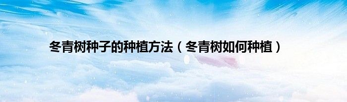 本文,冬青树种子的种植方法,冬青树如何种植到此就分享完毕,希望对大家有所帮助。