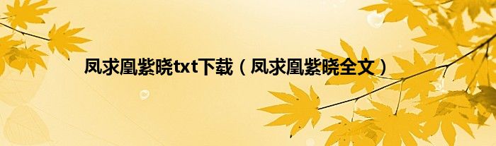 本文,凤求凰紫晓txt下载,凤求凰紫晓全文到此就分享完毕,希望对大家有所帮助。