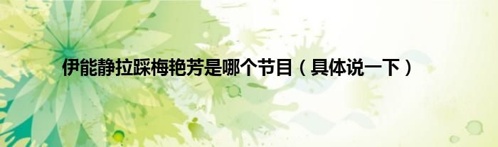 大家好,伊能静拉踩梅艳芳是哪个节目,具体说一下很多人还不知道,现在让我们一起来看看吧!