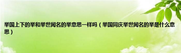 本文,举国上下的举和举世闻名的举意思一样吗,举国同庆举世闻名的举是什么意思到此就分享完毕,希望对大家有所帮助。